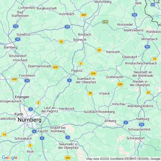Städte in der Nähe von Auerbach in der Oberpfalz