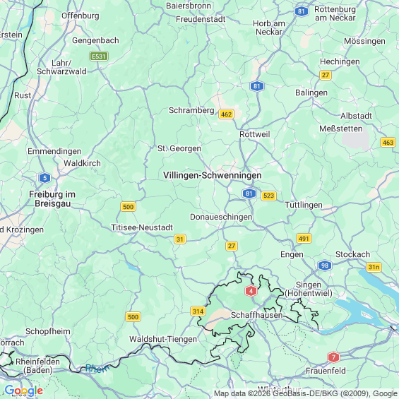 Städte in der Nähe von Donaueschingen