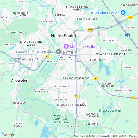 Städte in der Nähe von Halle (Saale)