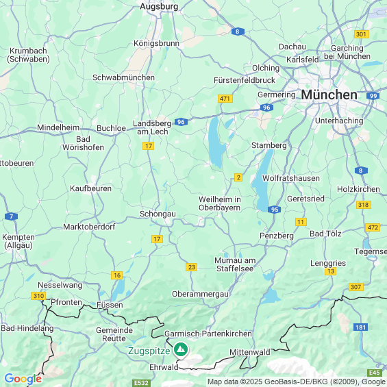 Städte in der Nähe von Hohenpeißenberg
