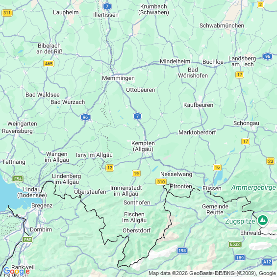 Städte in der Nähe von Kempten (Allgäu)