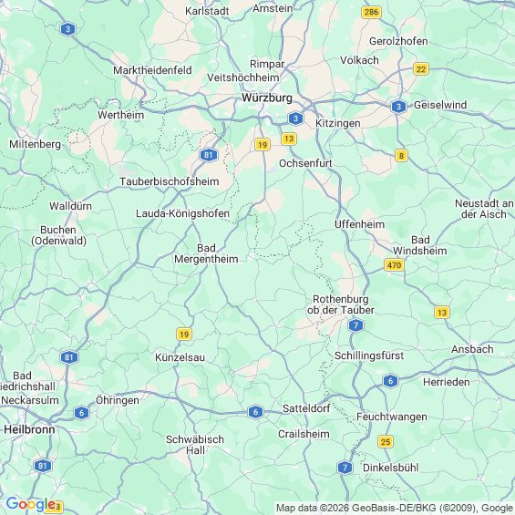 Städte in der Nähe von Schrozberg