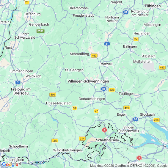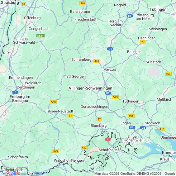 Städte in der Nähe von Villingen-Schwenningen