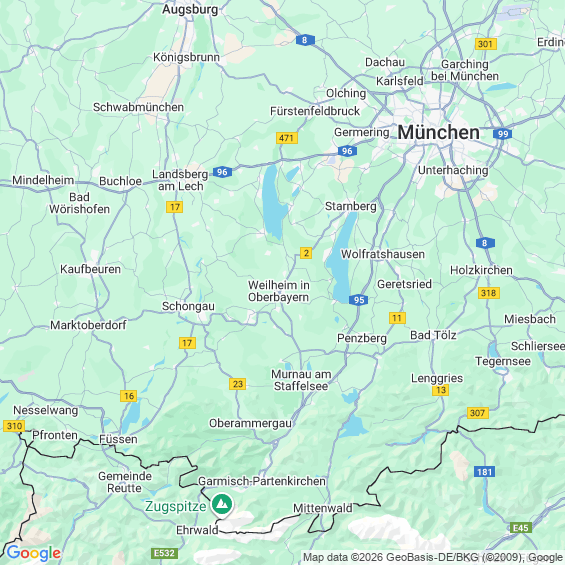 Städte in der Nähe von Weilheim in Oberbayern