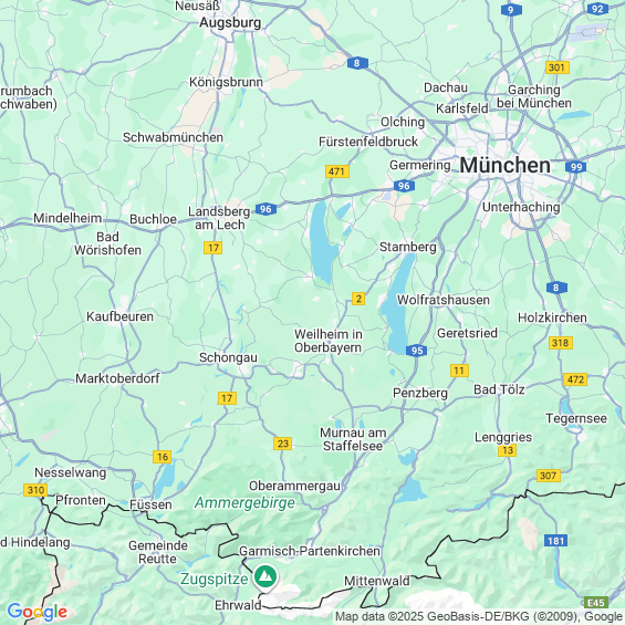 Städte in der Nähe von Polling Weilheim-Schongau